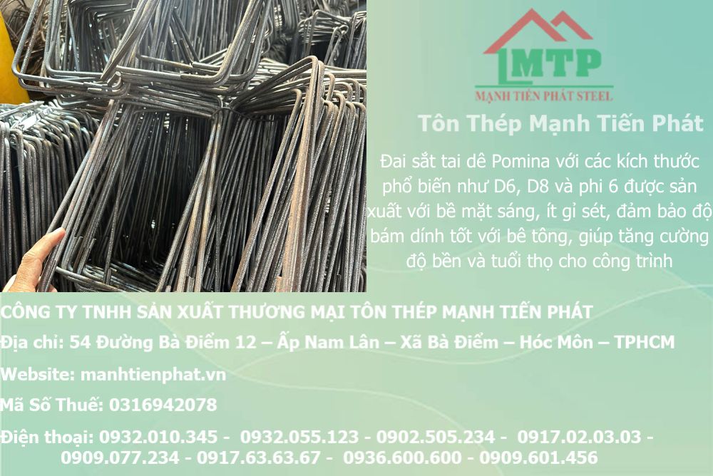 Mạnh Tiến Phát cam kết mang đến cho quý khách hàng sản phẩm đai sắt tai dê phi 6 Pomina, phi 8 Pomina chất lượng cao với giá thành tốt nhất hiện nay. Hãy liên hệ ngay hôm nay để nhận tư vấn và báo giá chi tiết!
