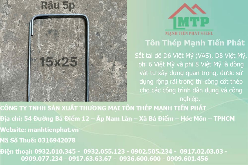 Mạnh Tiến Phát tự hào là đơn vị cung cấp đai thép tai dê D6, D8 Việt Mỹ chính hãng với dịch vụ tư vấn chuyên nghiệp 24/24h, báo giá nhanh chóng và giao hàng tận công trình tại TP.HCM cùng các tỉnh miền Nam. Chúng tôi cam kết mang đến sản phẩm chất lượng cao với mức giá rẻ nhất thị trường năm 2026.
