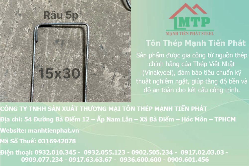 Trong ngành xây dựng hiện đại, đai sắt tai dê phi 6 và đai sắt tai dê phi 8 Việt Nhật Vinakyoei đóng vai trò quan trọng không thể thiếu. Đây là sản phẩm được sản xuất từ thép cuộn chất lượng cao, giúp tăng cường độ bền và khả năng chịu lực cho các công trình dân dụng lẫn công nghiệp. Mạnh Tiến Phát tự hào là đơn vị cung cấp đai thép tai dê d6 d8 Việt Nhật với giá cạnh tranh nhất thị trường, kèm dịch vụ tư vấn chuyên sâu 24/24 giờ.