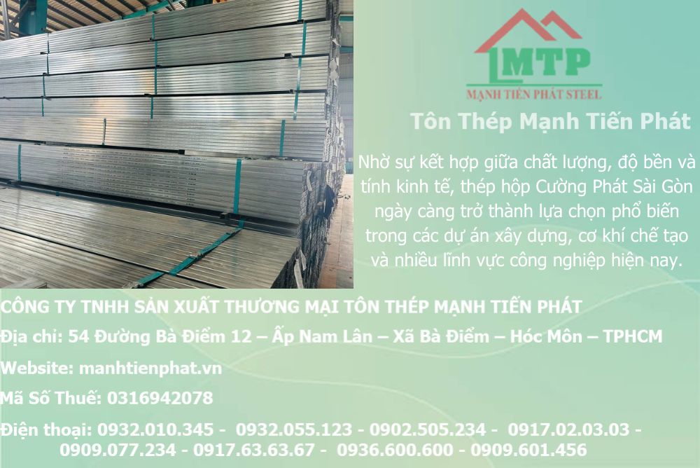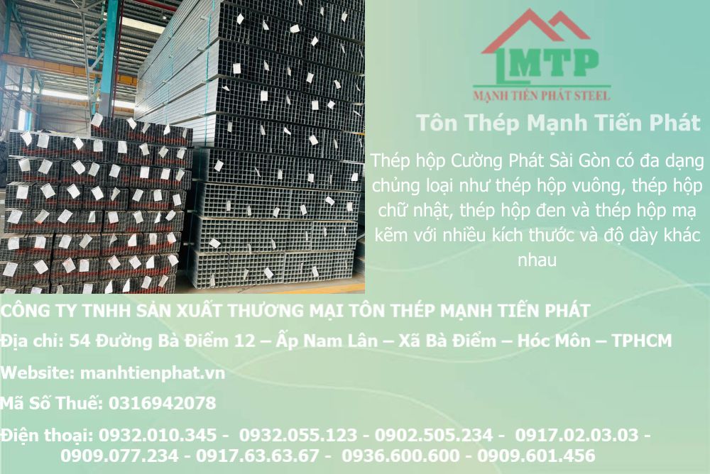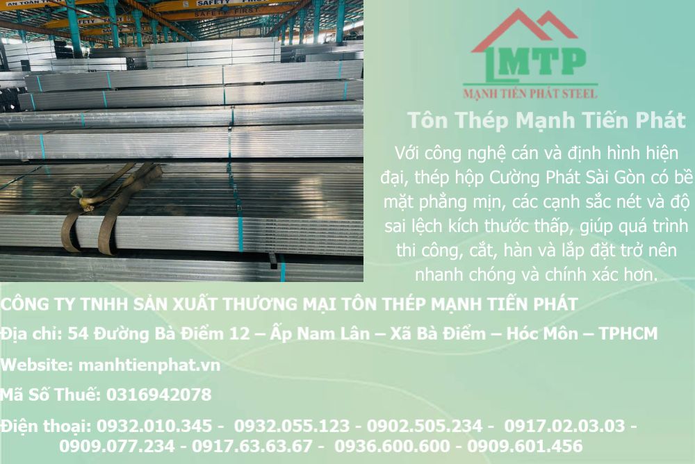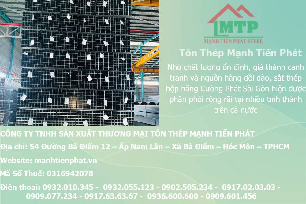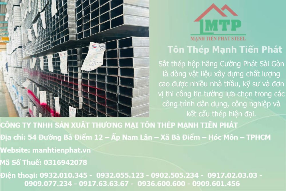 Sắt thép hộp Cường Phát Sài Gòn là giải pháp tối ưu về chất lượng, độ bền và chi phí cho mọi công trình tại miền Nam. Với dịch vụ chuyên nghiệp, hàng chính hãng, giá tốt và tư vấn 24/24h từ Mạnh Tiến Phát, bạn sẽ yên tâm từ khâu chọn mua đến hoàn thiện dự án.
