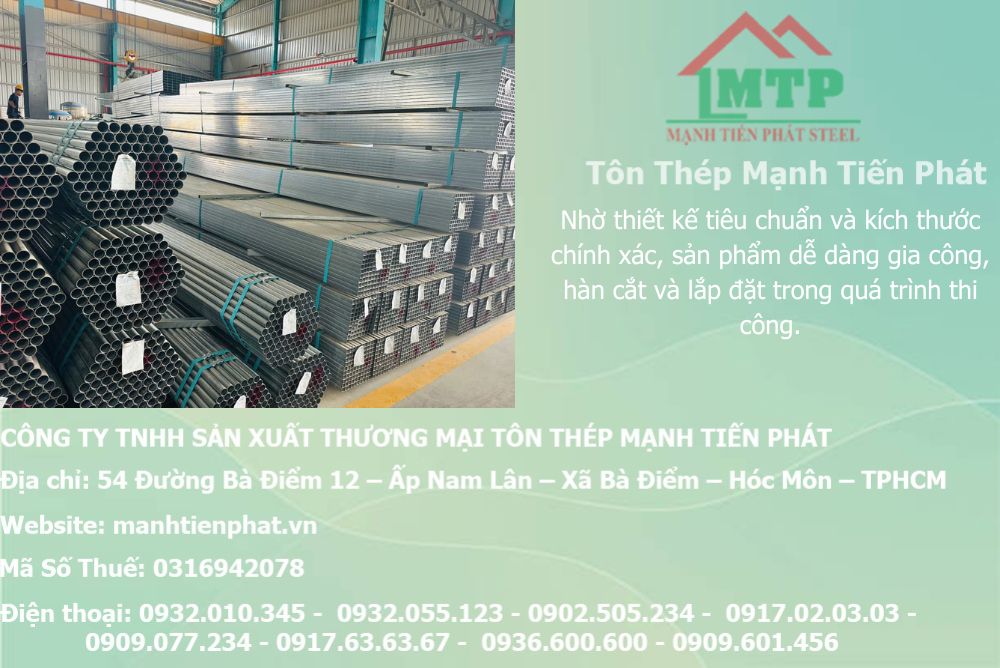 Ống tròn dễ cắt, ren ren bằng máy ren ống, hàn nối, uốn cong nhẹ. Trọng lượng vừa phải, tiện vận chuyển bằng xe tải nhỏ hoặc xe máy đến công trường hẹp. Nhiều nhà thầu tại TP.HCM và các tỉnh miền Nam chọn Cường Phát SG vì rút ngắn thời gian lắp đặt hệ thống ống, giảm chi phí nhân công đáng kể, đặc biệt với các công trình cần hoàn thiện nhanh như nhà xưởng, chung cư mới.