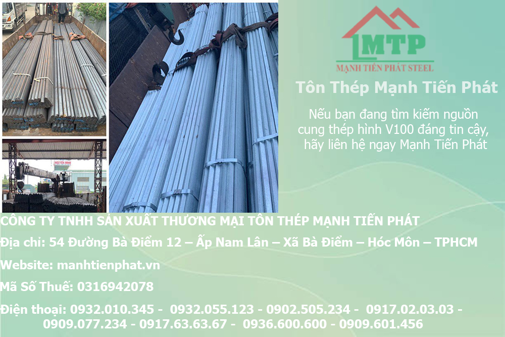 Với đội ngũ nhân viên chuyên nghiệp, Mạnh Tiến Phát cam kết mang đến sự hài lòng tuyệt đối cho khách hàng, giúp quý khách lựa chọn được sản phẩm thép hình V100 chất lượng, giá cả hợp lý và dịch vụ tận tâm tại Bình Định. Mạnh Tiến Phát luôn sẵn sàng hỗ trợ mọi yêu cầu từ đơn giản đến phức tạp, đảm bảo sự thành công cho mọi dự án của khách hàng.