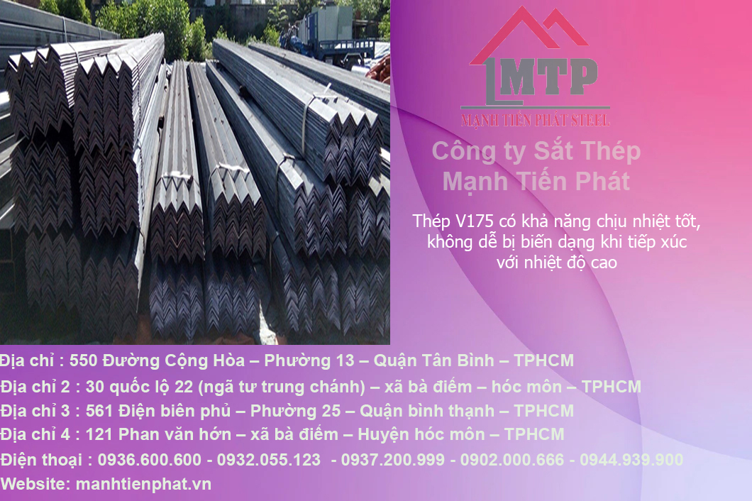 Giá cả cạnh tranh: Mạnh Tiến Phát cam kết cung cấp thép hình V175 với giá cả hợp lý, giúp khách hàng tiết kiệm chi phí mà vẫn đảm bảo chất lượng sản phẩm. Công ty có các chính sách giá ưu đãi cho các đơn hàng lớn hoặc hợp tác lâu dài.