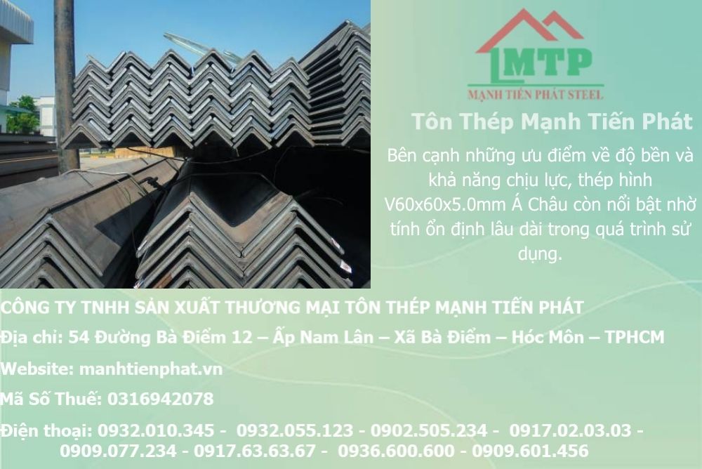 Sản phẩm thép hình Á Châu ACS tại Mạnh Tiến Phát không chỉ nổi bật về chất lượng mà còn về giá cả cạnh tranh, minh bạch và công khai trong bảng báo giá, giúp các doanh nghiệp và nhà thầu dễ dàng lập kế hoạch ngân sách. Đây thực sự là lựa chọn hàng đầu cho những ai đang tìm kiếm thép hình V 60x60x5.0mm chất lượng cao, uy tín, và dịch vụ chuyên nghiệp tại Việt Nam.