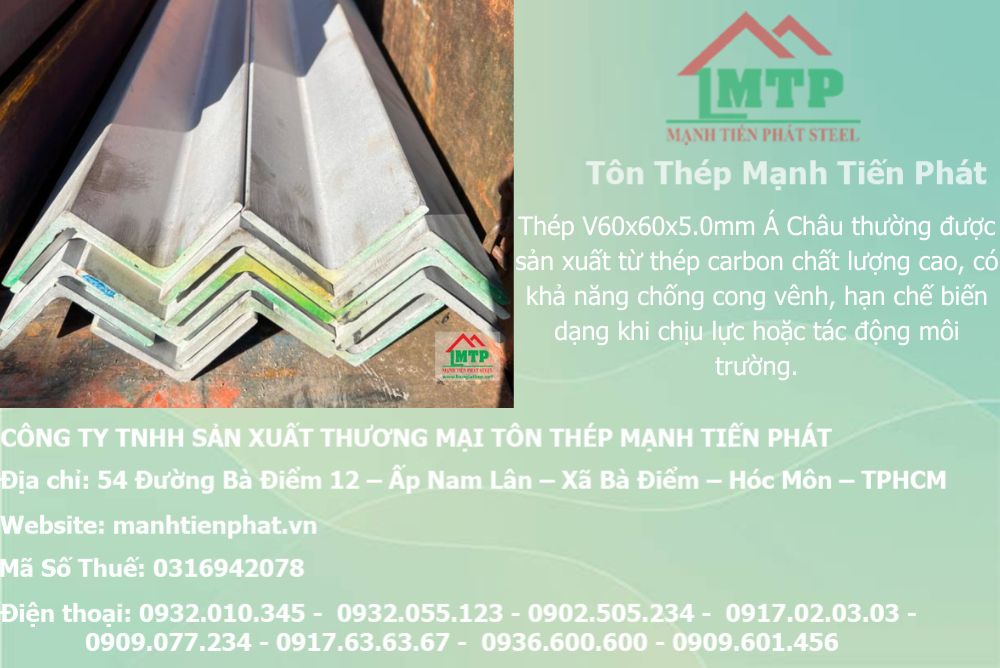 Quý khách hàng đang tìm kiếm thông tin chi tiết về thép V60x60x5mm Á Châu, quy cách sản phẩm, ưu điểm nổi bật cũng như lý do nên chọn mua tại Mạnh Tiến Phát? Bài viết này sẽ cung cấp đầy đủ thông tin cần thiết, giúp bạn đưa ra quyết định sáng suốt cho dự án của mình.