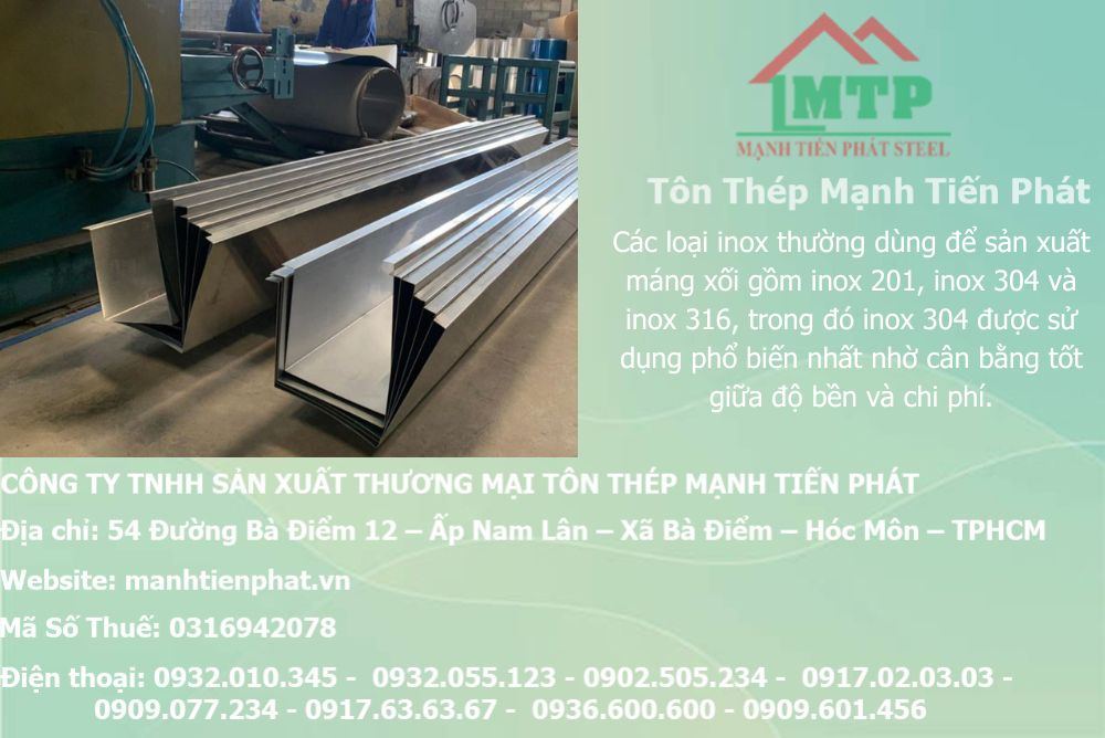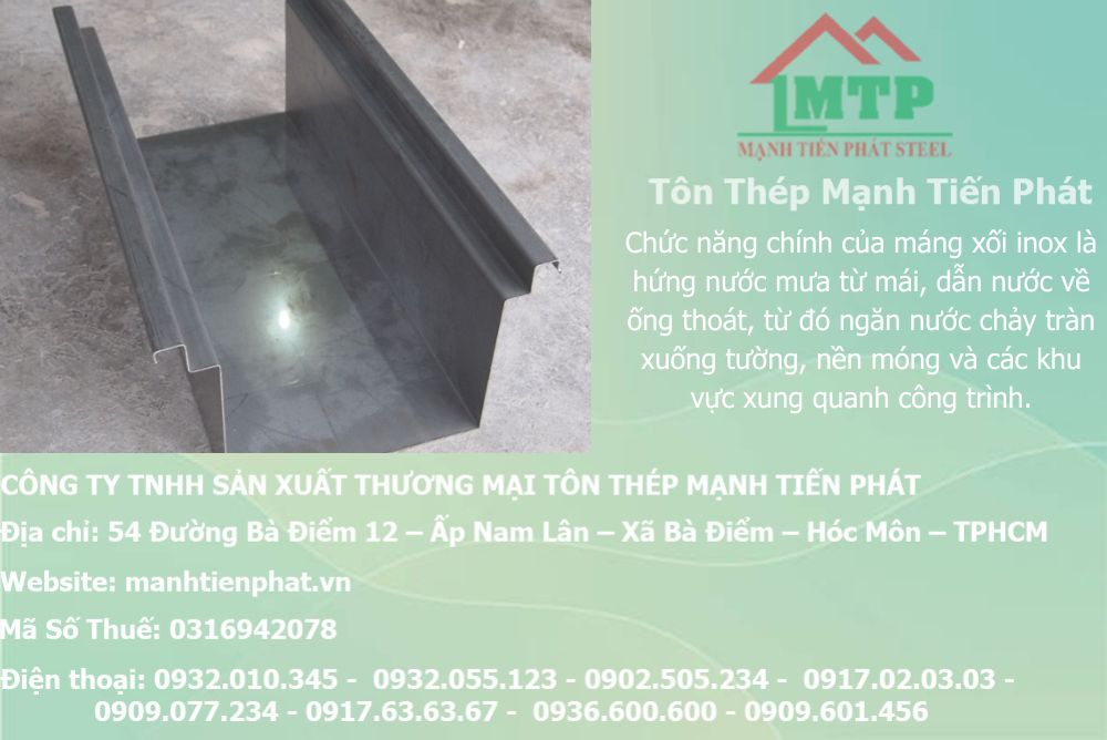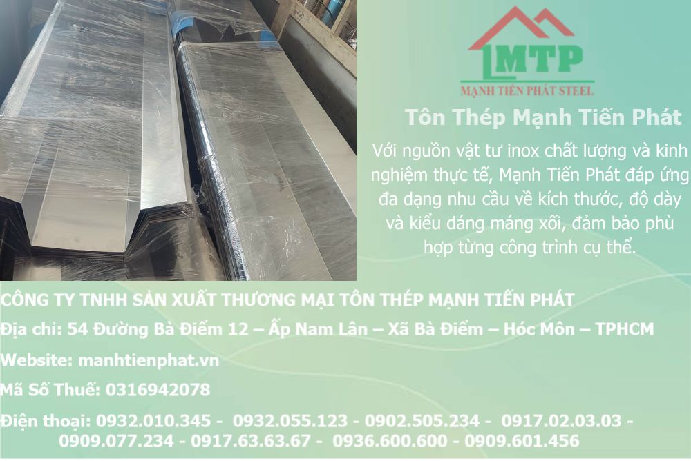 Bên cạnh đó, đơn vị còn tư vấn kiểu dáng, kích thước, độ dày phù hợp với lưu lượng nước mưa và kết cấu mái, giúp công trình vận hành ổn định, bền bỉ trước mọi điều kiện thời tiết. Nhờ quy trình làm việc rõ ràng, báo giá minh bạch và khả năng gia công theo bản vẽ, theo kích thước thực tế, Mạnh Tiến Phát luôn đáp ứng tốt các yêu cầu kỹ thuật khắt khe, mang đến giải pháp máng xối inox bền – đẹp – hiệu quả – phù hợp mọi loại công trình.