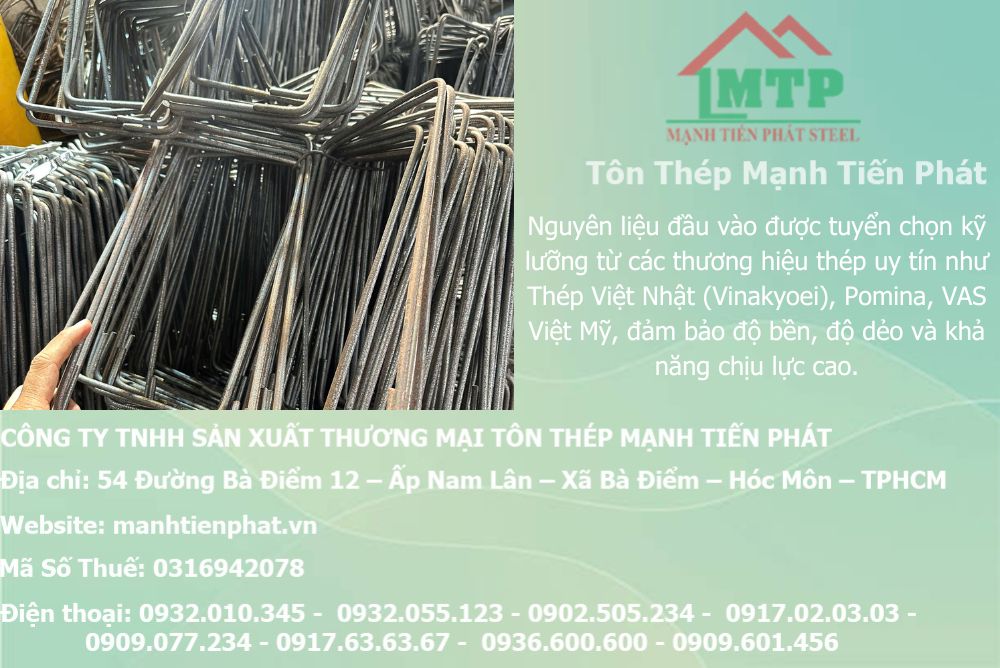 Với sứ mệnh mang đến những giải pháp sắt thép chất lượng cao, giá cả phải chăng, Mạnh Tiến Phát cam kết sẽ là người bạn đồng hành đáng tin cậy trong mọi công trình xây dựng của bạn. Dù là nhận gia công bẻ đai tai dê, uốn bẻ đai sắt thép theo yêu cầu hay mua đai sắt tai dê số lượng lớn, chúng tôi đều sẵn sàng phục vụ với thái độ chuyên nghiệp nhất.