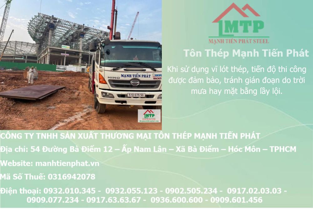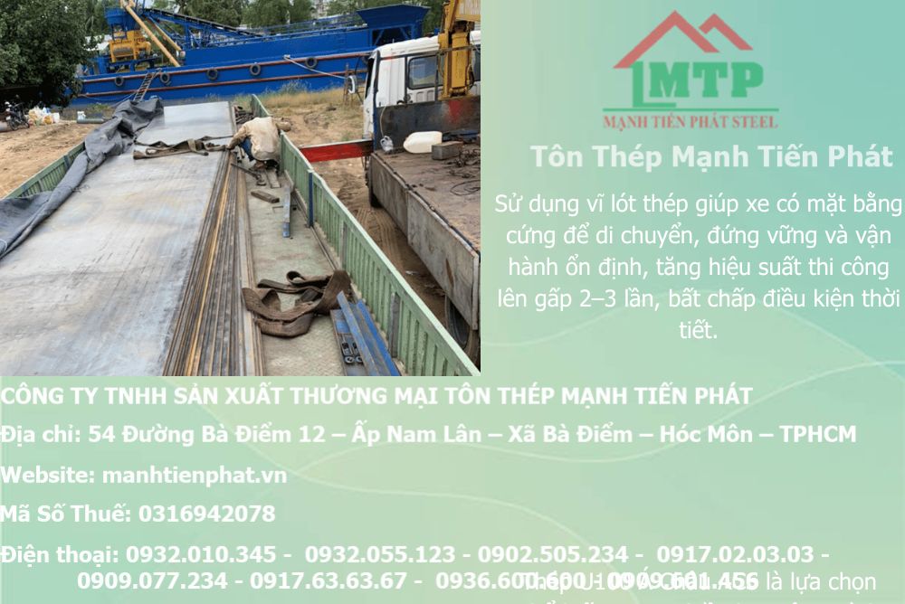 Giải pháp tối ưu nhất được các nhà thầu chuyên nghiệp tại Phường Bình Trưng tin dùng chính là thuê vĩ lót (tole chống lầy, tấm tôn lót đường tạm) để tạo đường đi vững chắc, chịu tải cao. Công ty Mạnh Tiến Phát với kho bãi gần khu vực đang dẫn đầu dịch vụ cho thuê này.
